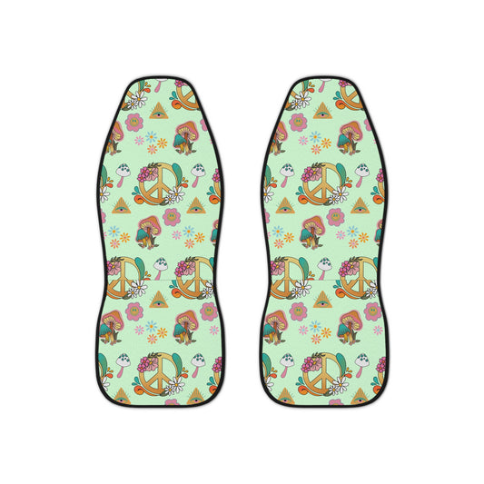 60's 70's Print Colorful Peace Sign Mint Green Car Seat Covers