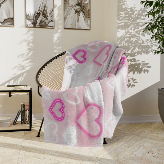 Pink Cloud and Glow Love Hearts Patterned Velveteen Microfiber Throw Blanket Multiple Sizes