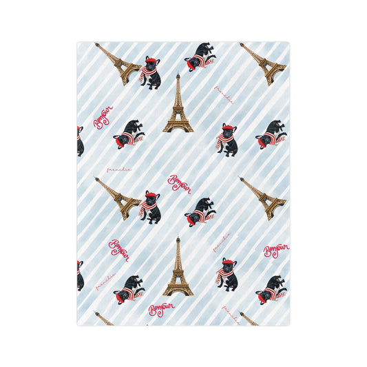 Bonjour! Frenchie French Bulldog Blue & White Velveteen Microfiber Throw Blanket Multiple Sizes
