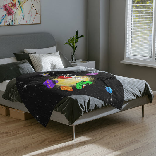 Pupelangelo Dog Astronaut & Alien Meet in Space Patterned Velveteen Microfiber Throw Blanket Multiple Sizes